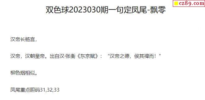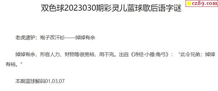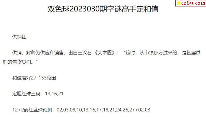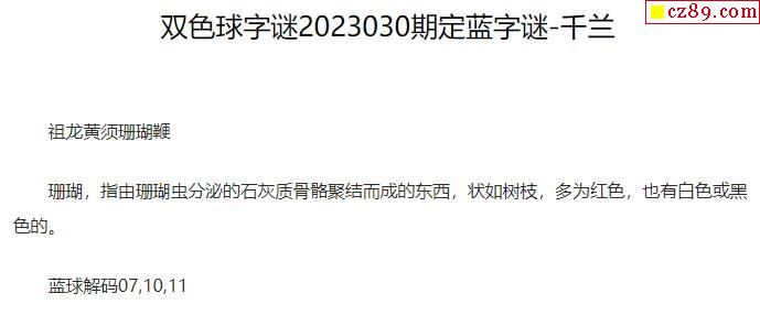 2023年030期牛彩网双色球字迷图谜汇总