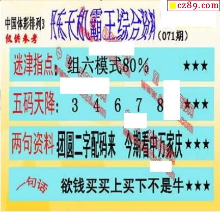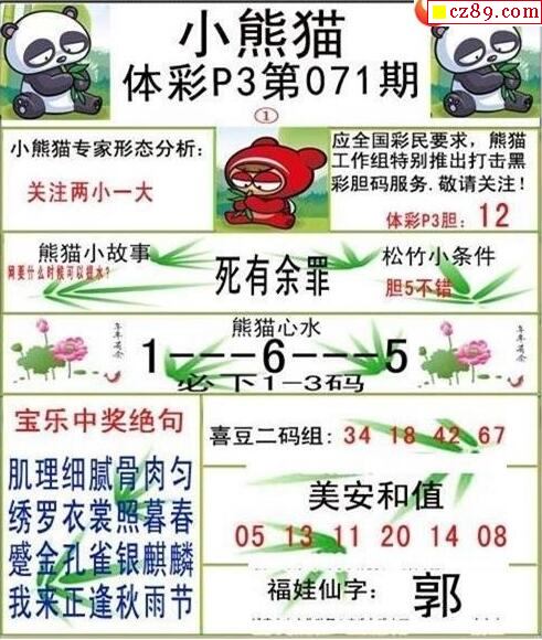 2023年071期牛彩网体彩P3画迷图谜汇总分享