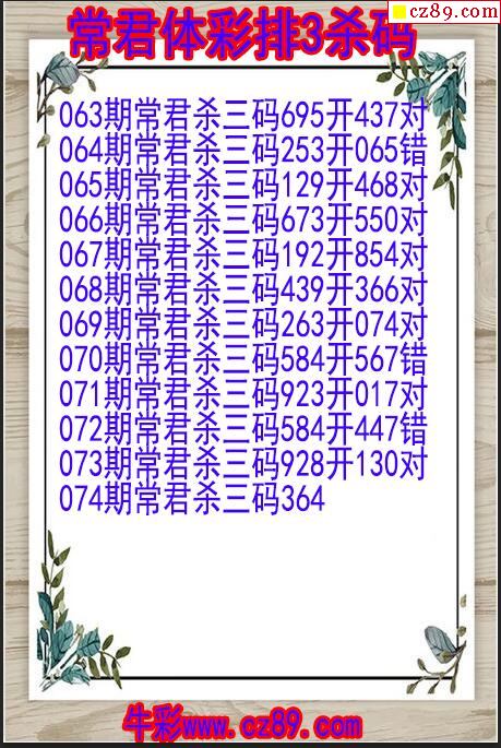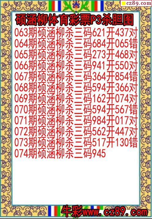 2023年074期体彩P3胆码杀码原创图总汇