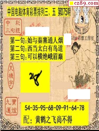 2023年075期牛彩网体彩P3画迷图谜汇总分享
