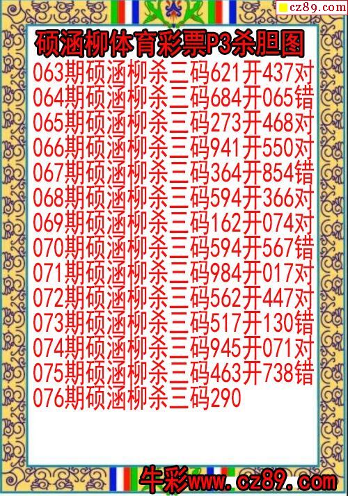 2023年076期体彩P3胆码杀码原创图总汇