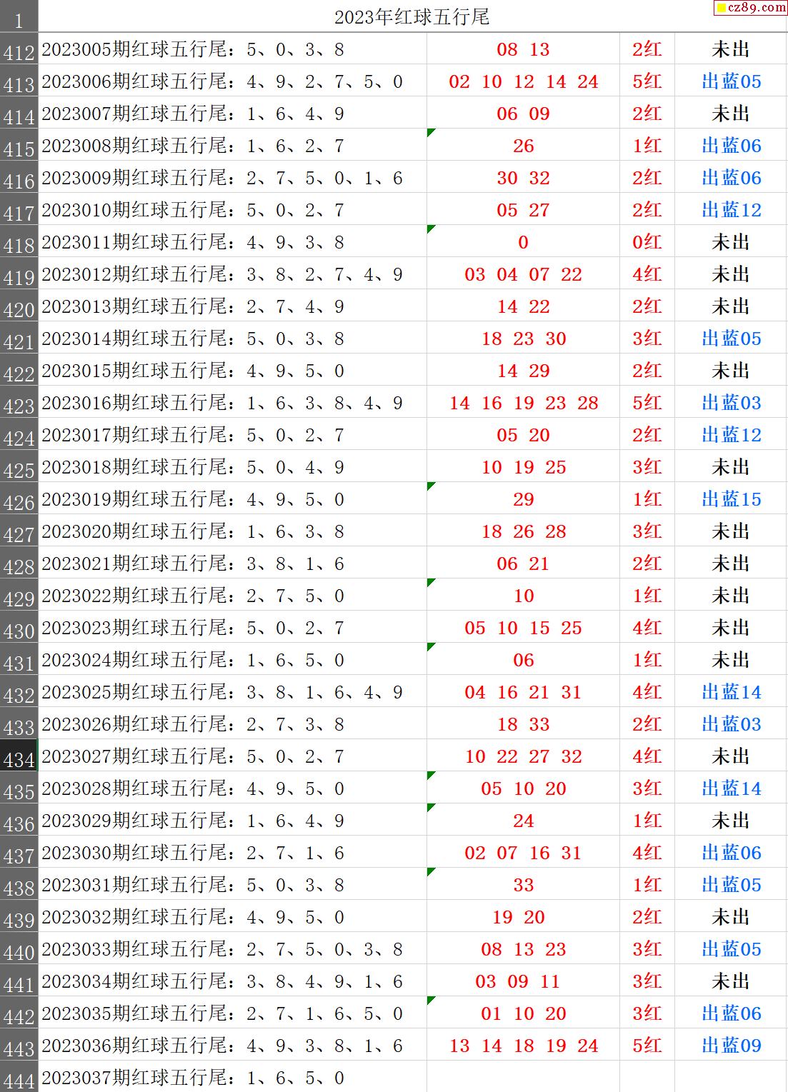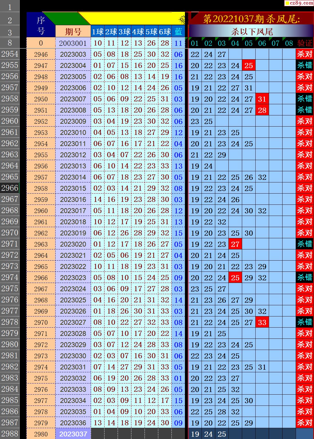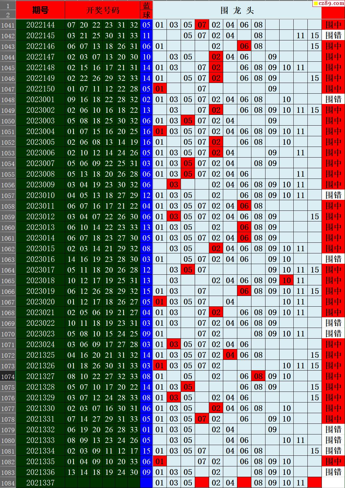 23年037期秋雨龙头凤尾走势图表