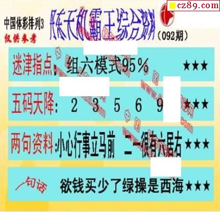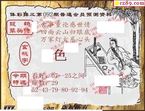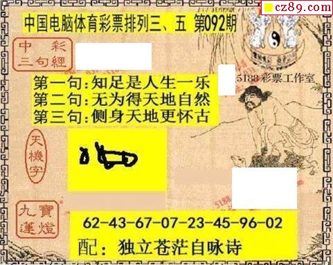 2023年092期牛彩网体彩P3画迷图谜汇总分享