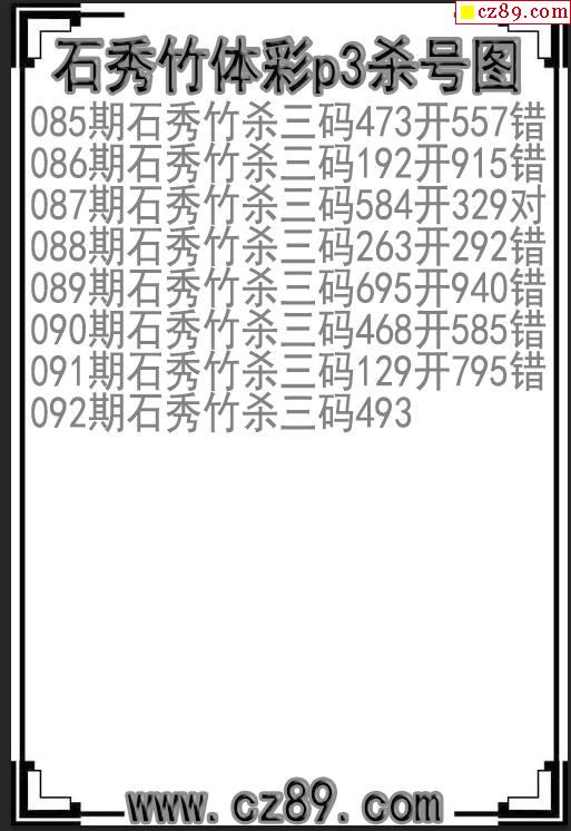 2023年092期体彩P3胆码杀码原创图总汇