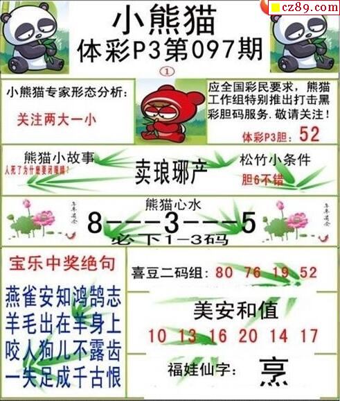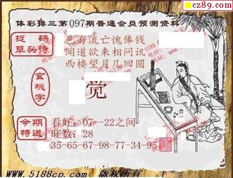 2023年095期牛彩网体彩P3画迷图谜汇总分享