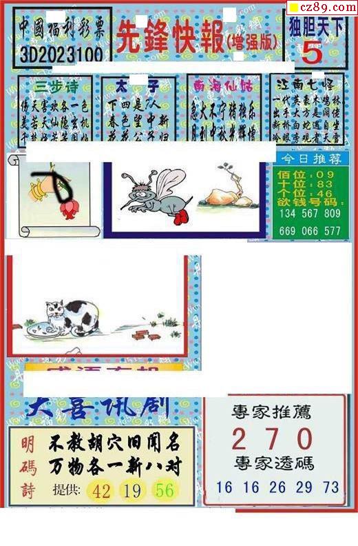牛彩版3D字谜彩报图25年330期打印版
