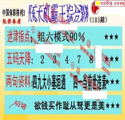 2023年103期牛彩网体彩P3画迷图谜汇总分享