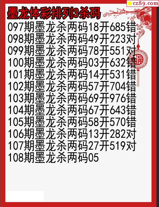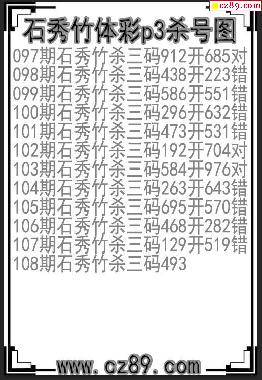 2023年108期体彩P3胆码杀码原创图总汇