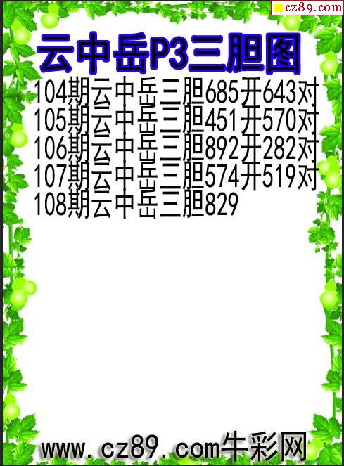 2025329期排列三 牛彩图谜预测汇总