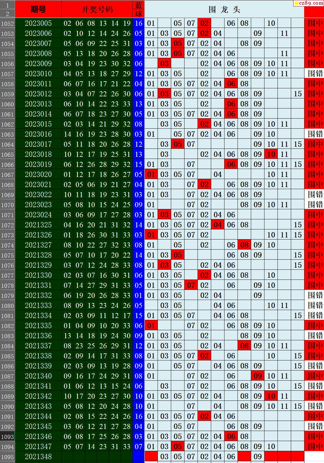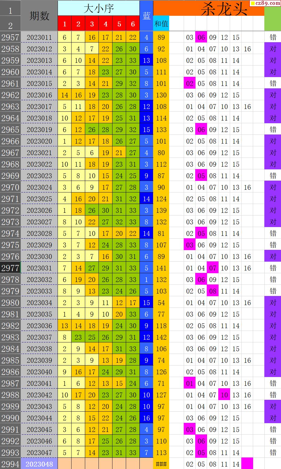 23年048期秋雨龙头凤尾走势图表