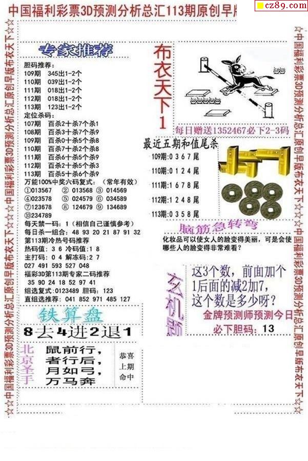 福彩3D2025330期 祁连牧哥百财纳福胆码图谜推荐