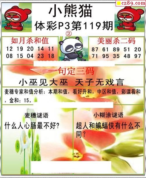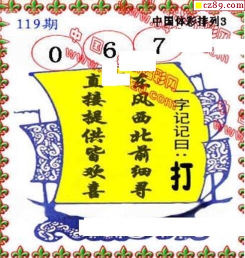 2023年119期牛彩网体彩P3画迷图谜汇总分享