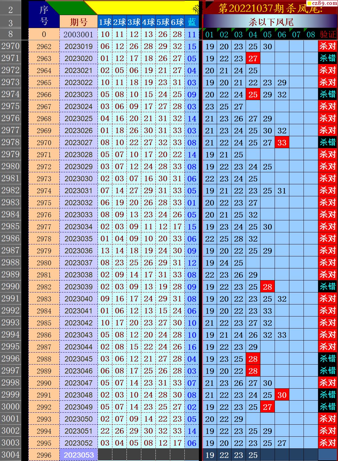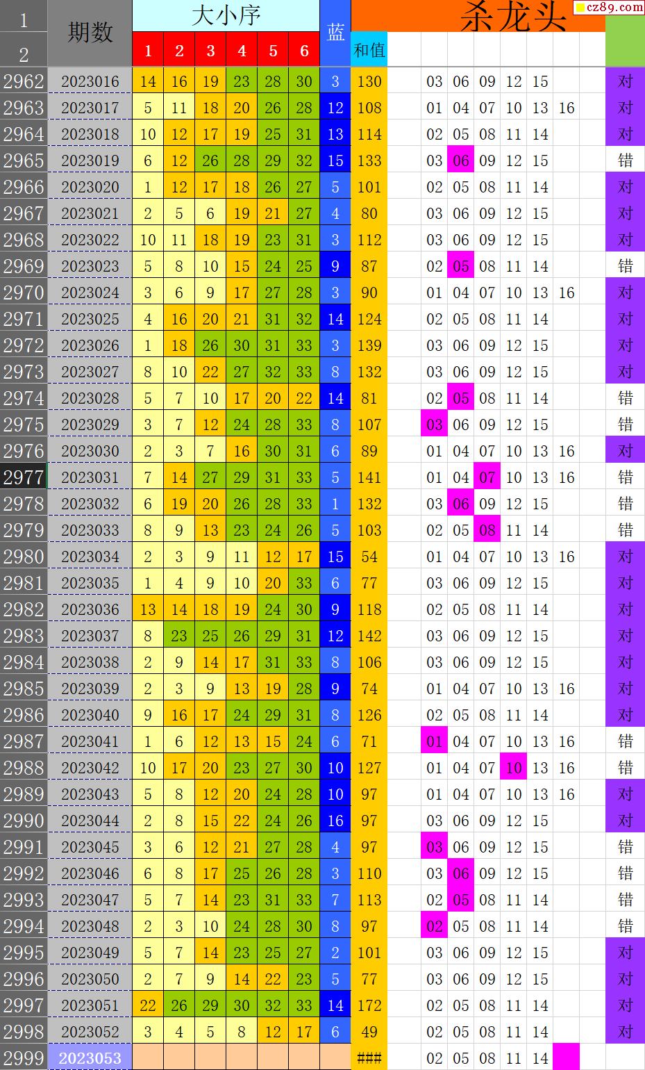 23年053期秋雨龙头凤尾走势图表