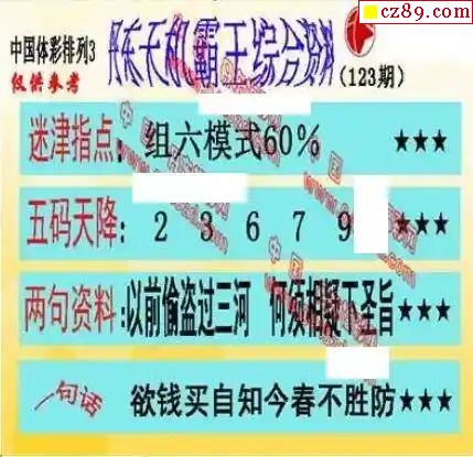 2023年123期牛彩网体彩P3画迷图谜汇总分享