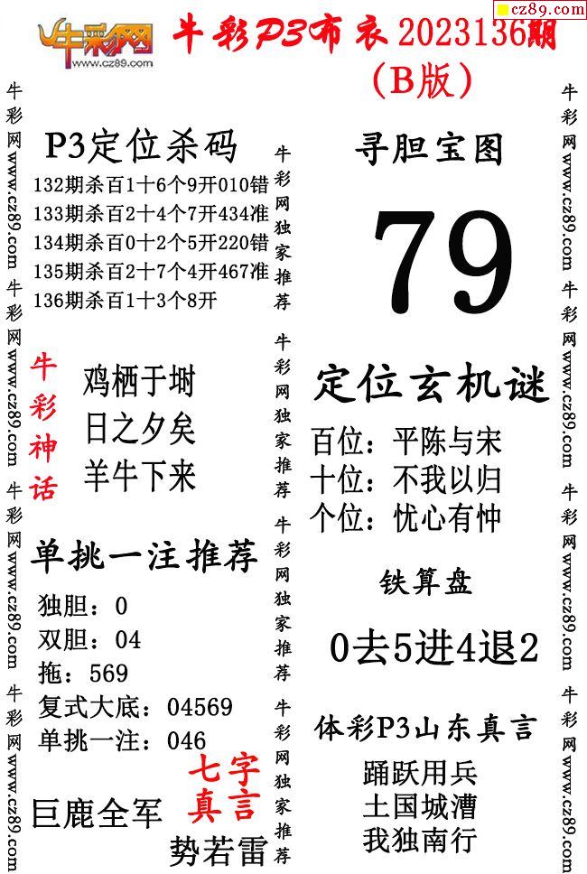 牛彩P3布衣25年330期AB版图谜(精华版)