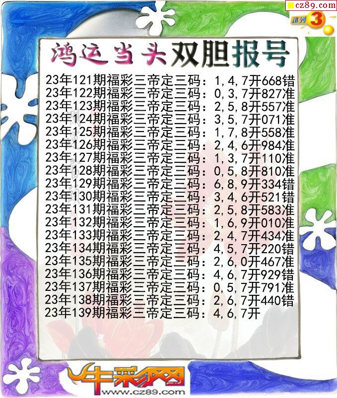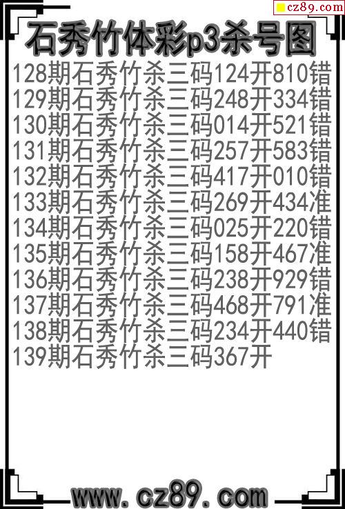 2023年139期体彩P3胆码杀码原创图总汇