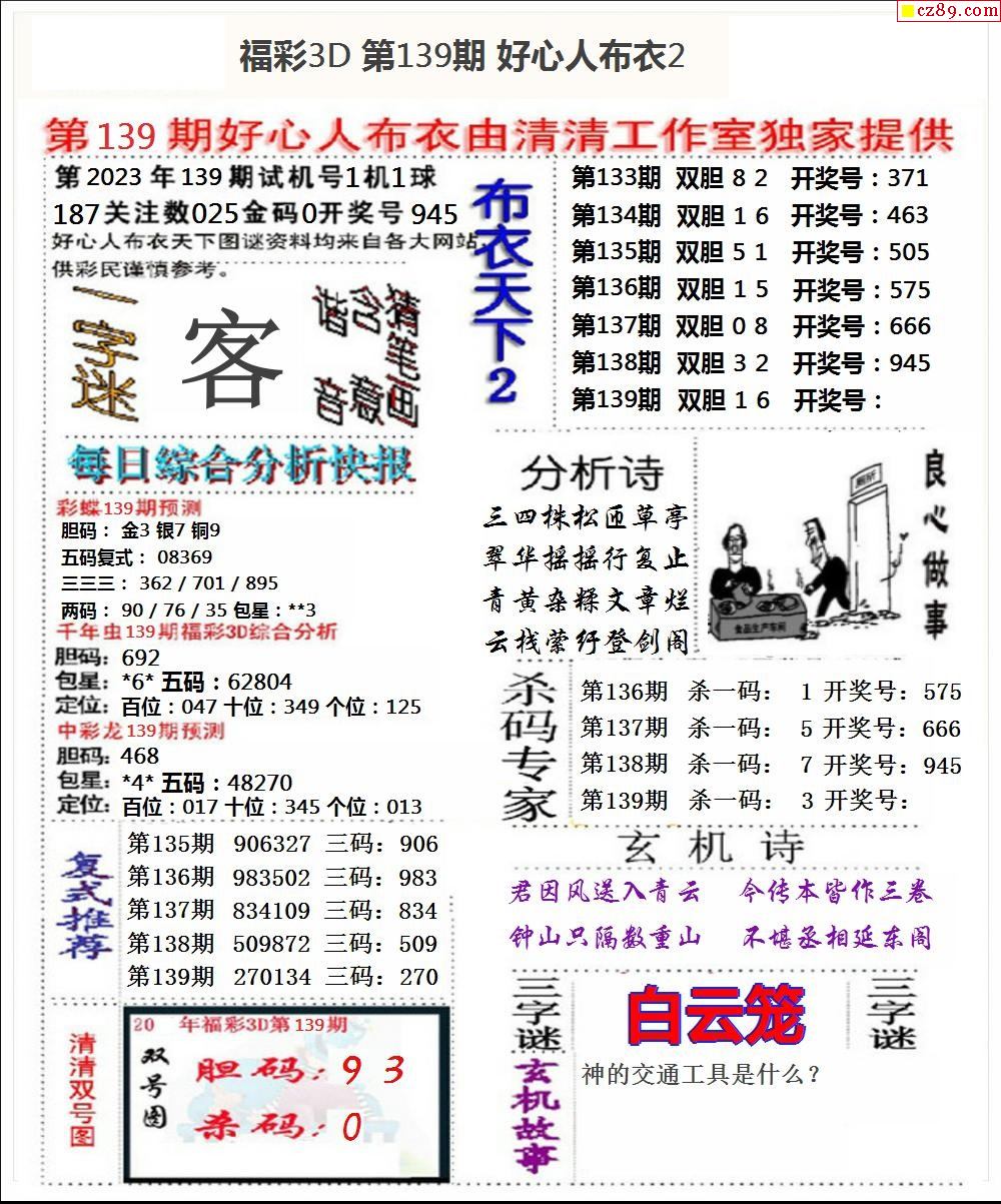 2023139期3d图谜汇总(五)