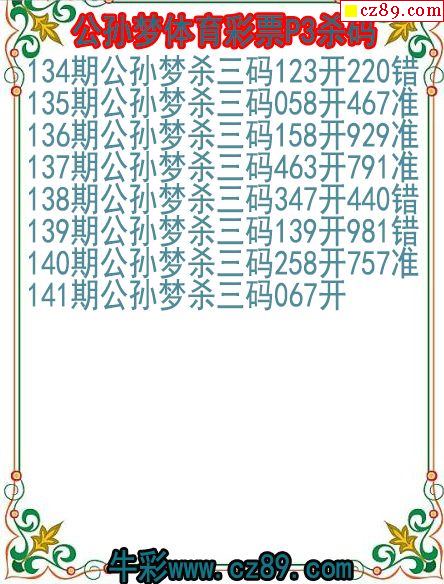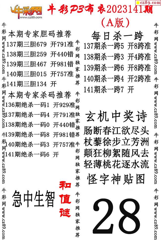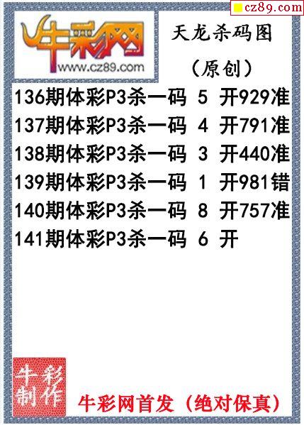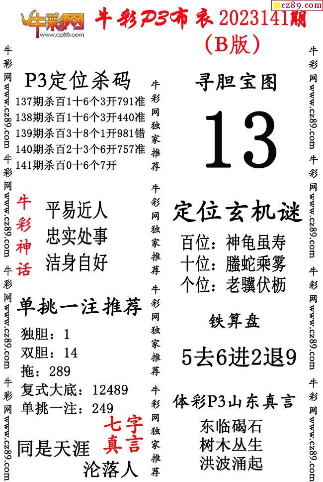 2023年141期体彩P3胆码杀码原创图总汇