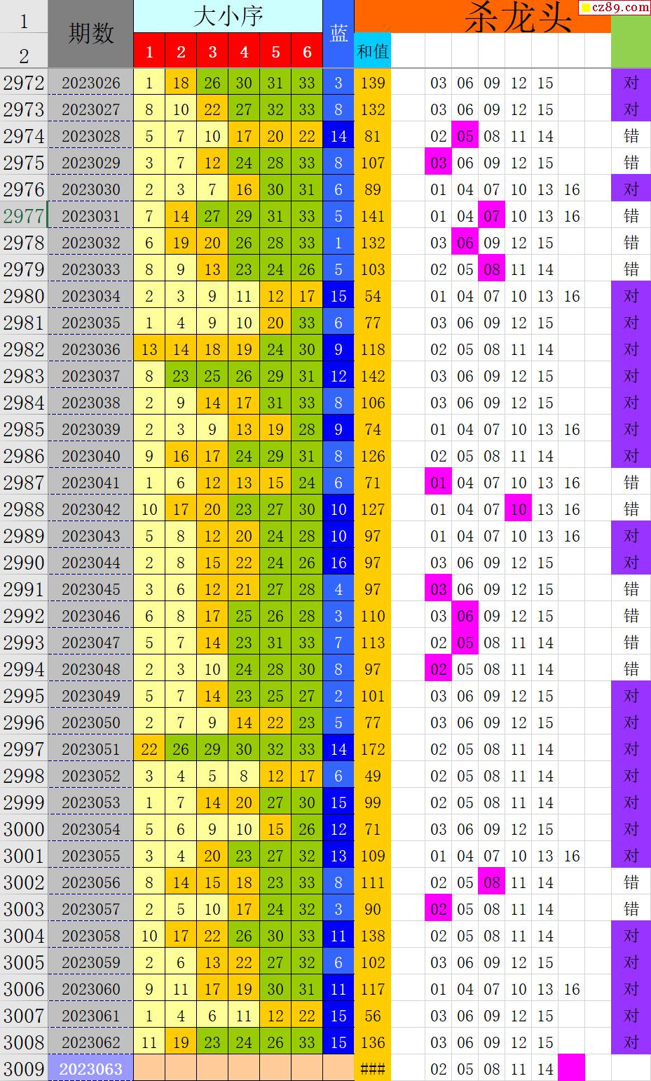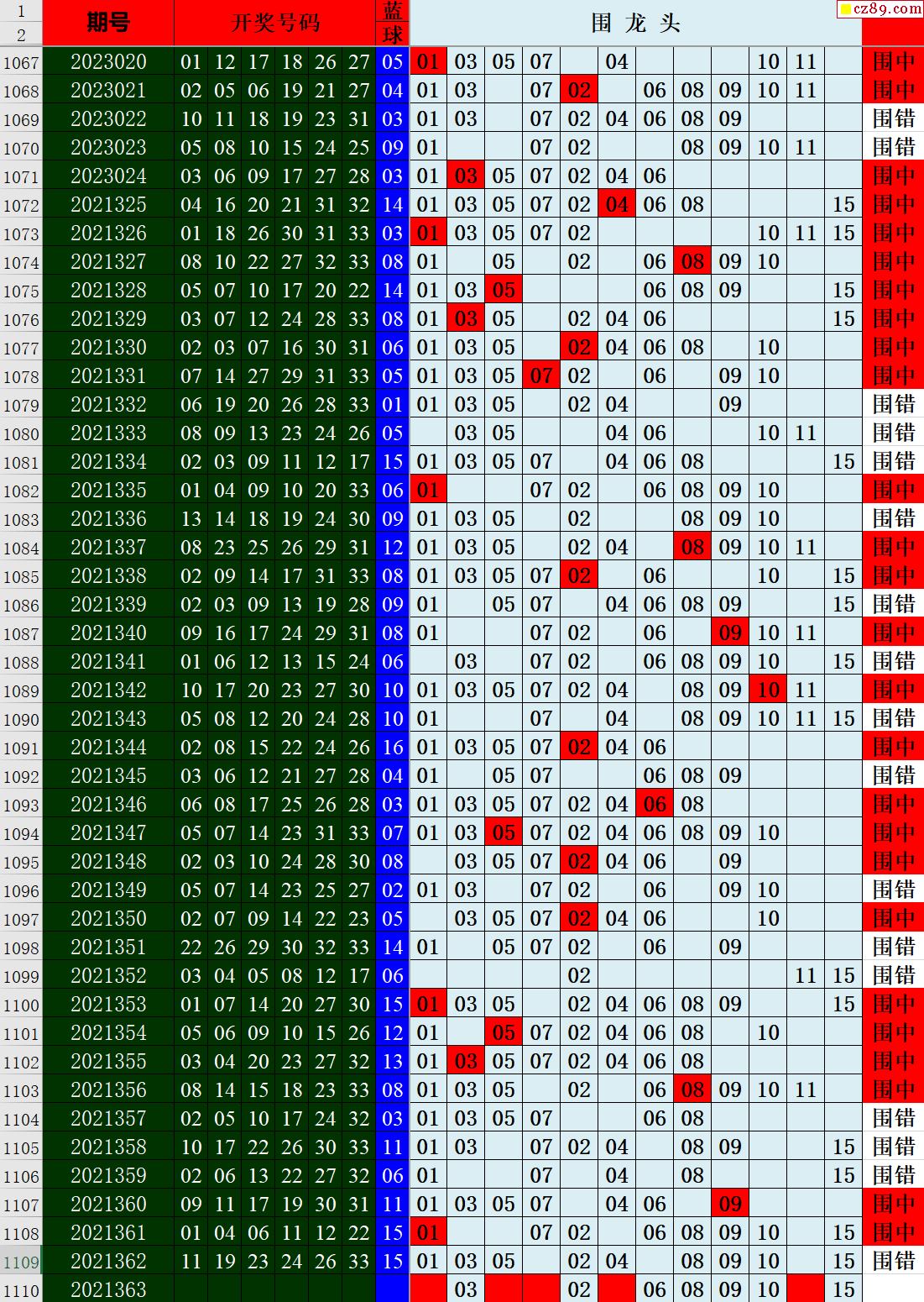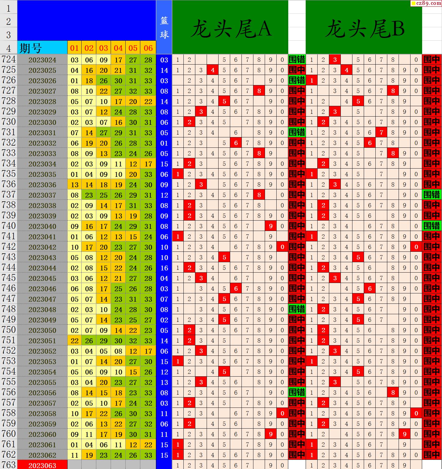 23年063期秋雨龙头凤尾走势图表