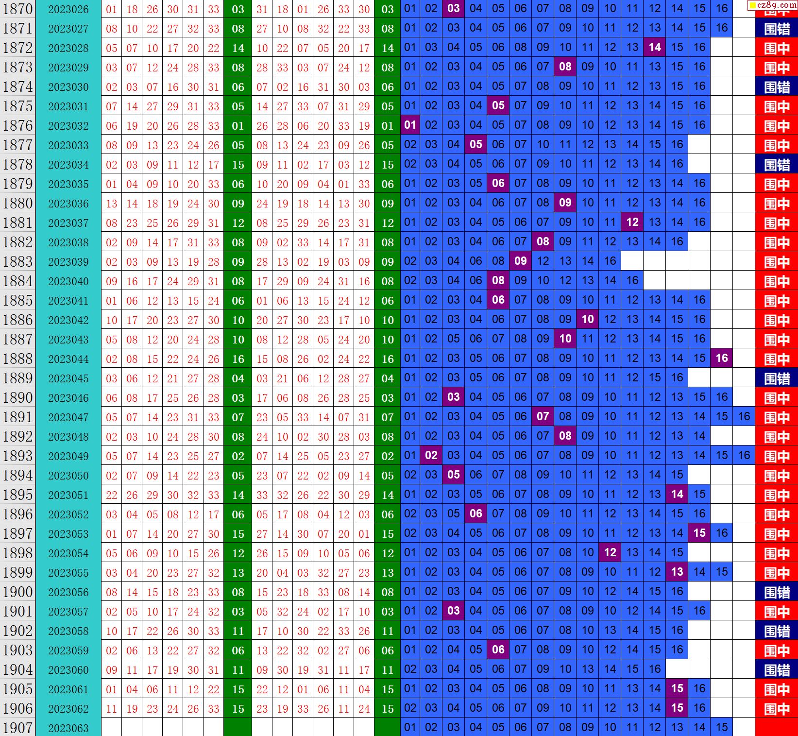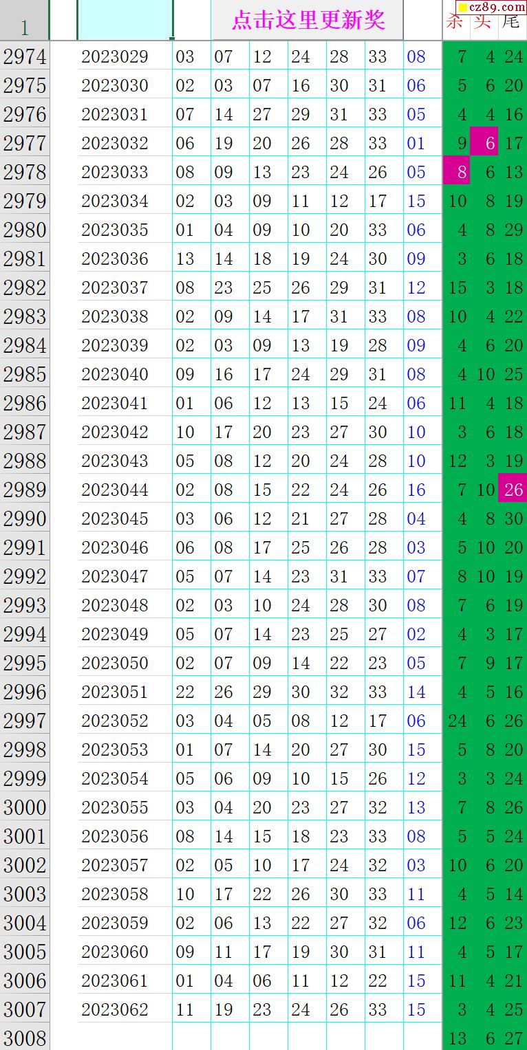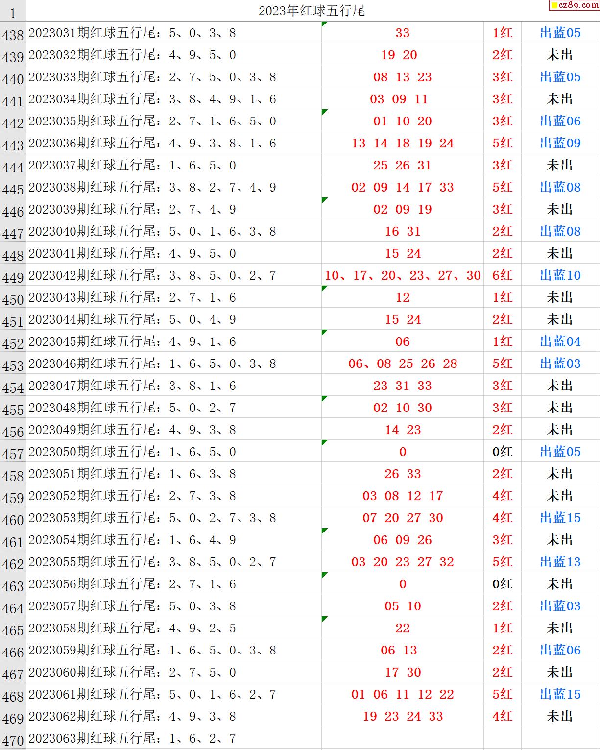 23年063期秋雨龙头凤尾走势图表