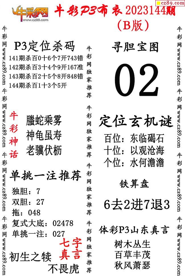 2025337期排列三 白鱼舟P3图谜二将斗胆图