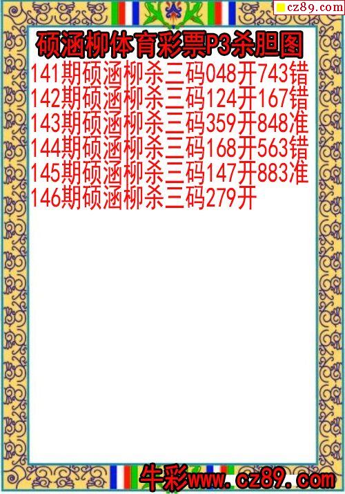 2026年071期牛彩网体彩P3画迷图谜汇总分享