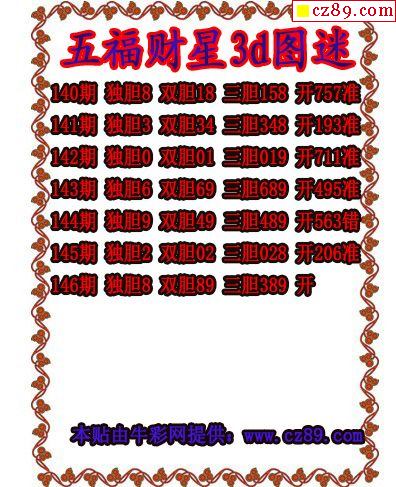 福彩3D2025332期 祁连牧哥百财纳福胆码图谜推荐