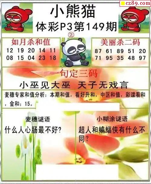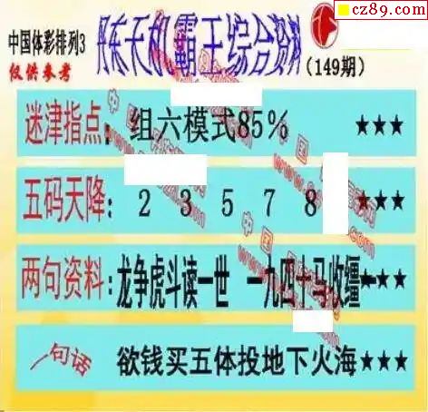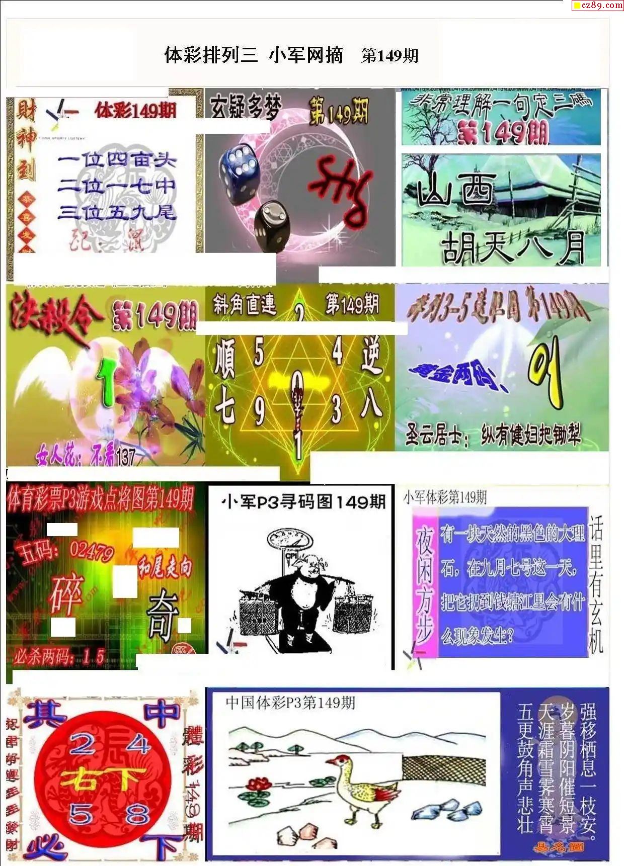 2023年149期牛彩网体彩P3画迷图谜汇总分享