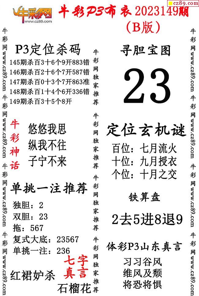 牛彩P3布衣25年331期AB版图谜(精华版)