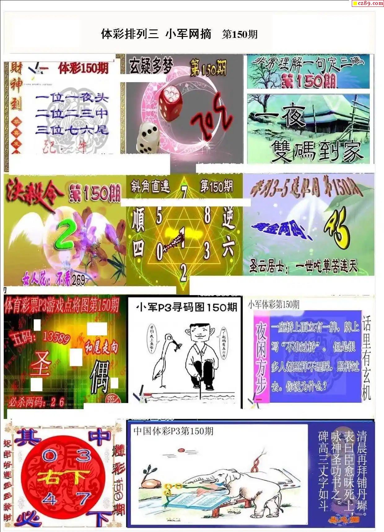 2023年150期牛彩网体彩P3画迷图谜汇总分享