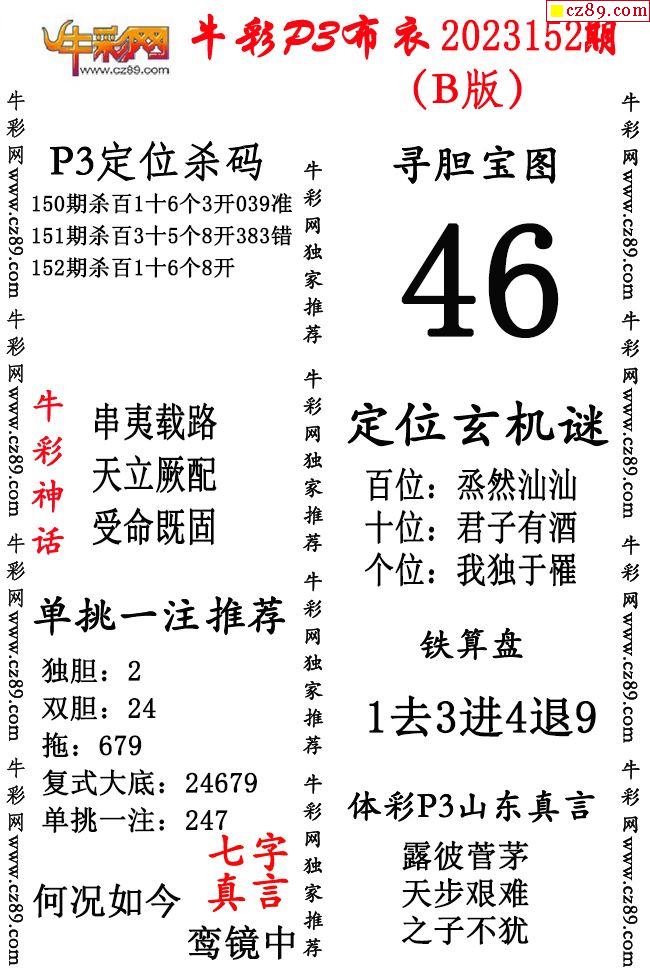 牛彩P3布衣25年333期AB版图谜(精华版)