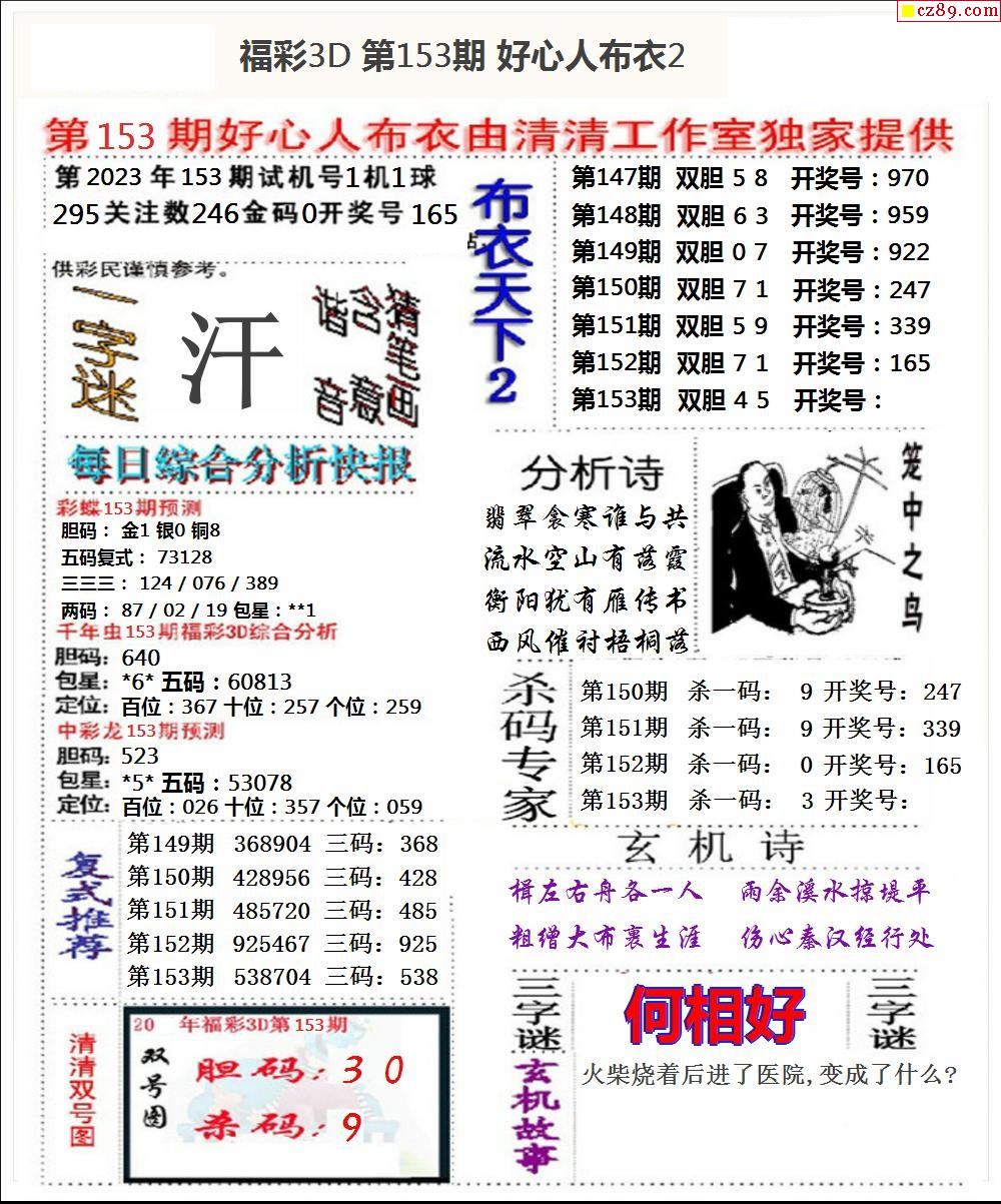 2023153期3d字谜图谜总汇