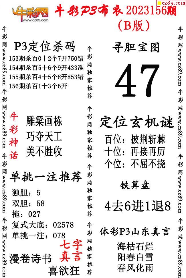牛彩P3布衣25年334期AB版图谜(精华版)