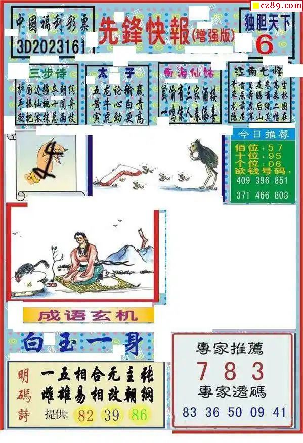 福彩3D2025331期 万家图谜三国胆拖杀图