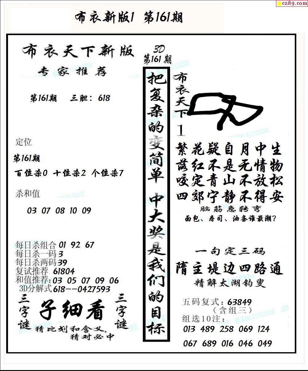2023161期3d字谜图谜总汇