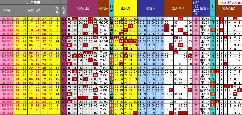 23年070期飞向阳光福彩双色球预测图表汇总