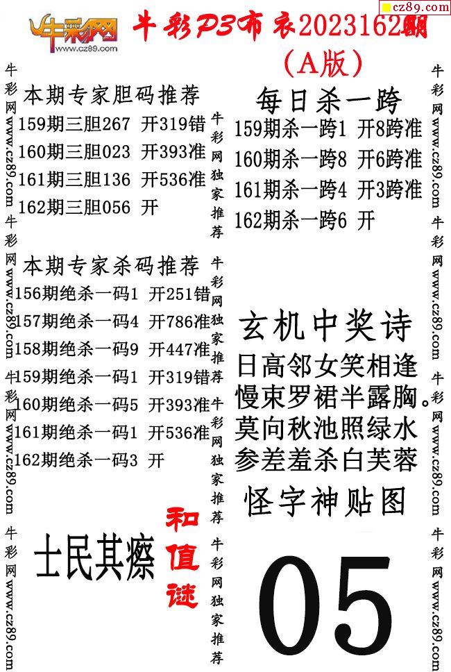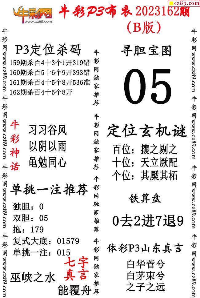 牛彩P3布衣25年330期AB版图谜(精华版)