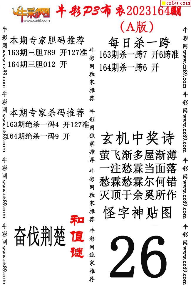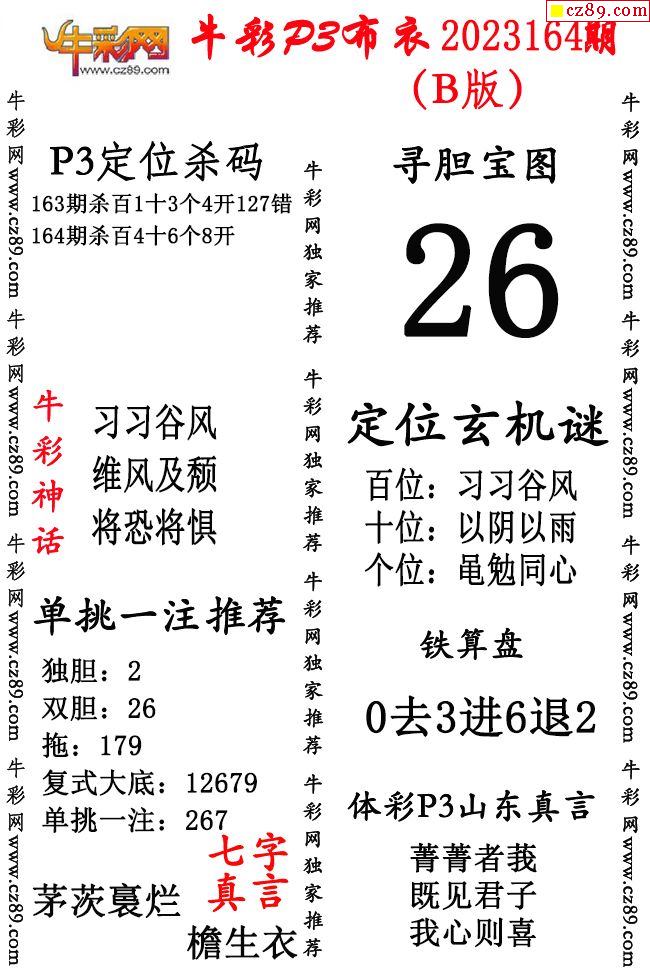 牛彩P3布衣25年329期AB版图谜(精华版)