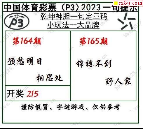 2023年165期牛彩网体彩P3画迷图谜汇总分享