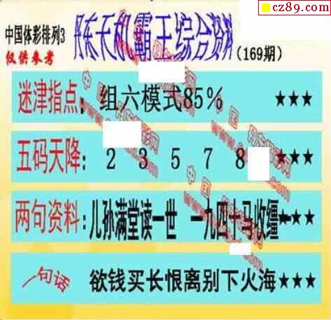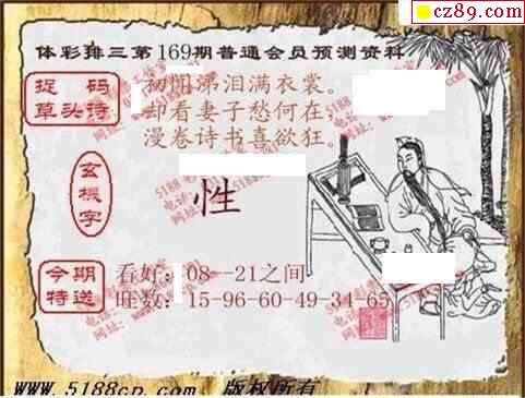 2023年169期牛彩网体彩P3画迷图谜汇总分享