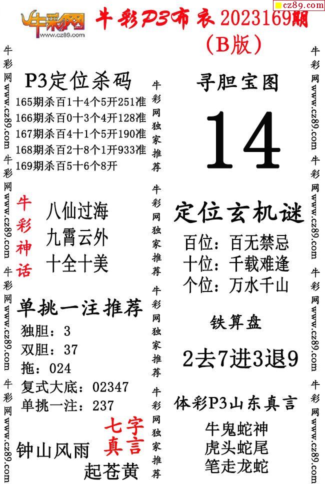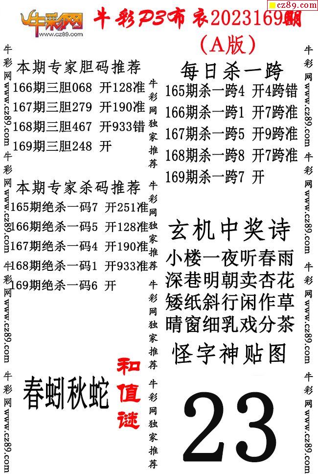 牛彩P3布衣25年335期AB版图谜(精华版)