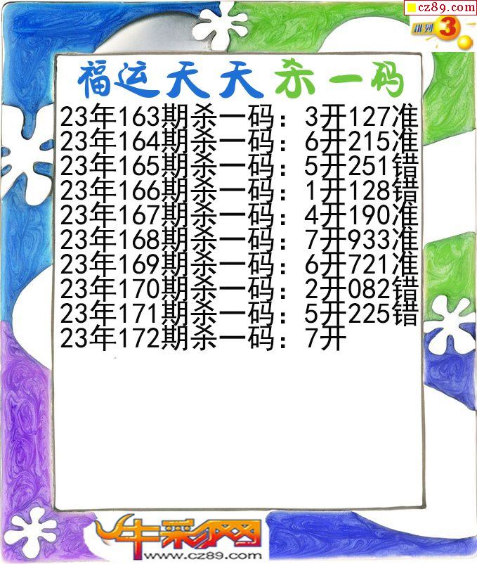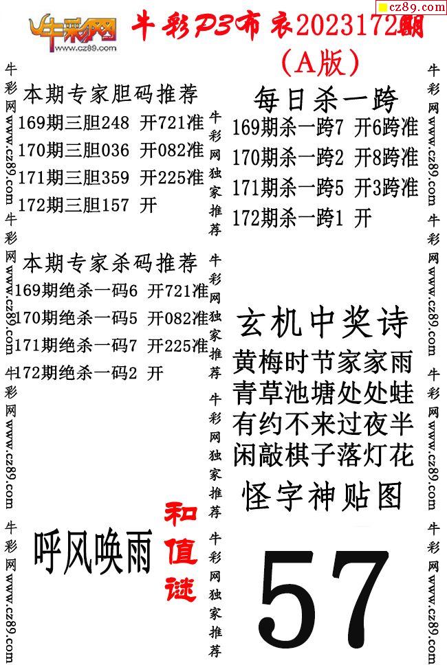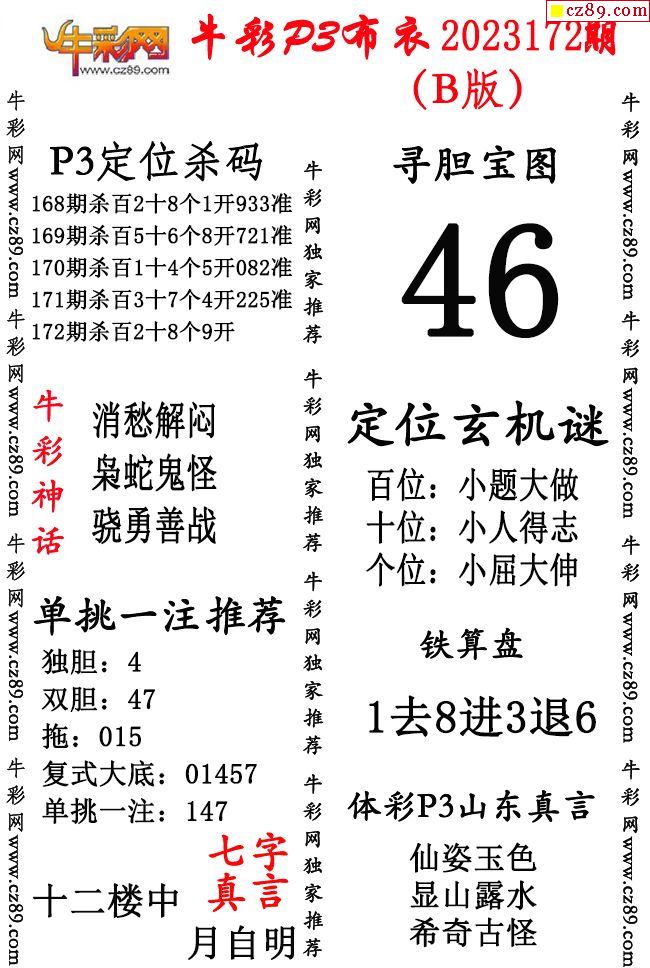 2023年172期体彩P3胆码杀码原创图总汇