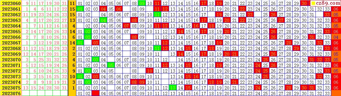 23年076期飞向阳光福彩双色球预测图表汇总