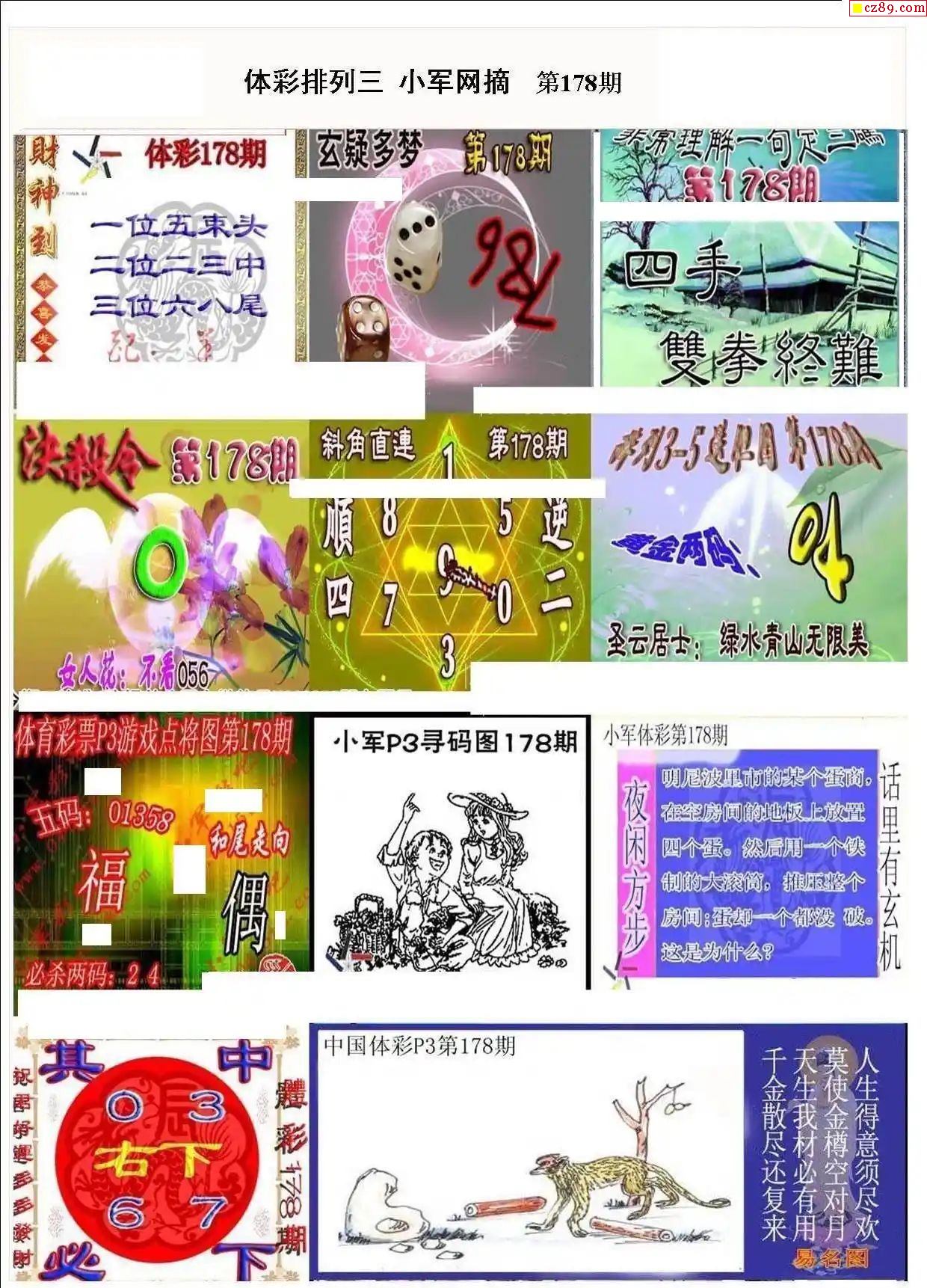 2023年178期牛彩网体彩P3画迷图谜汇总分享