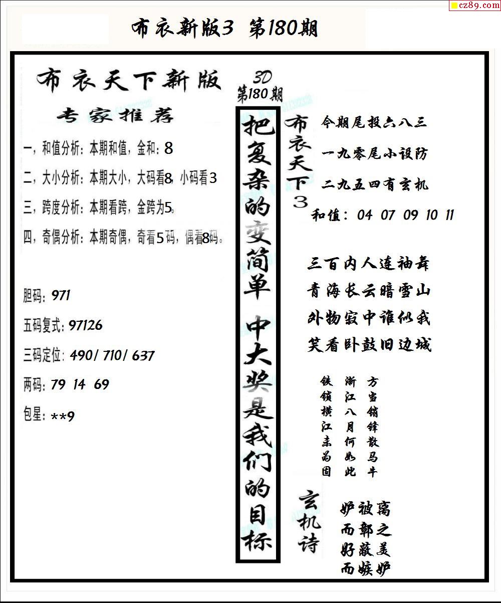 牛彩版3D字谜彩报图25年332期打印版