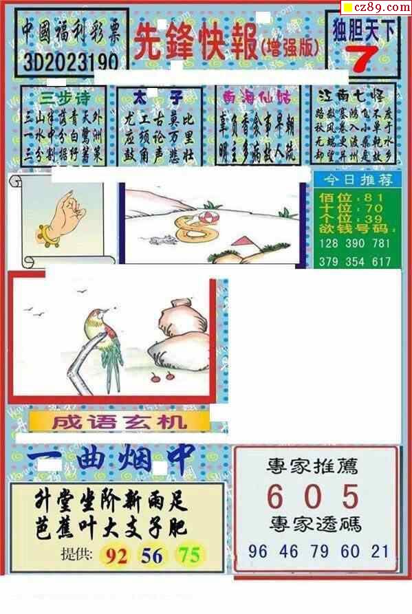 牛彩版3D字谜彩报图25年332期打印版