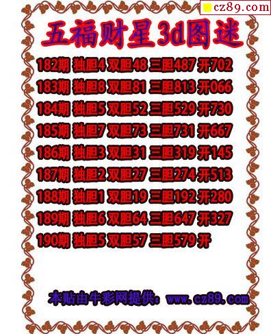 福彩3D2025329期 祁连牧哥百财纳福胆码图谜推荐