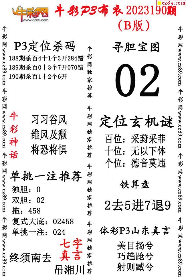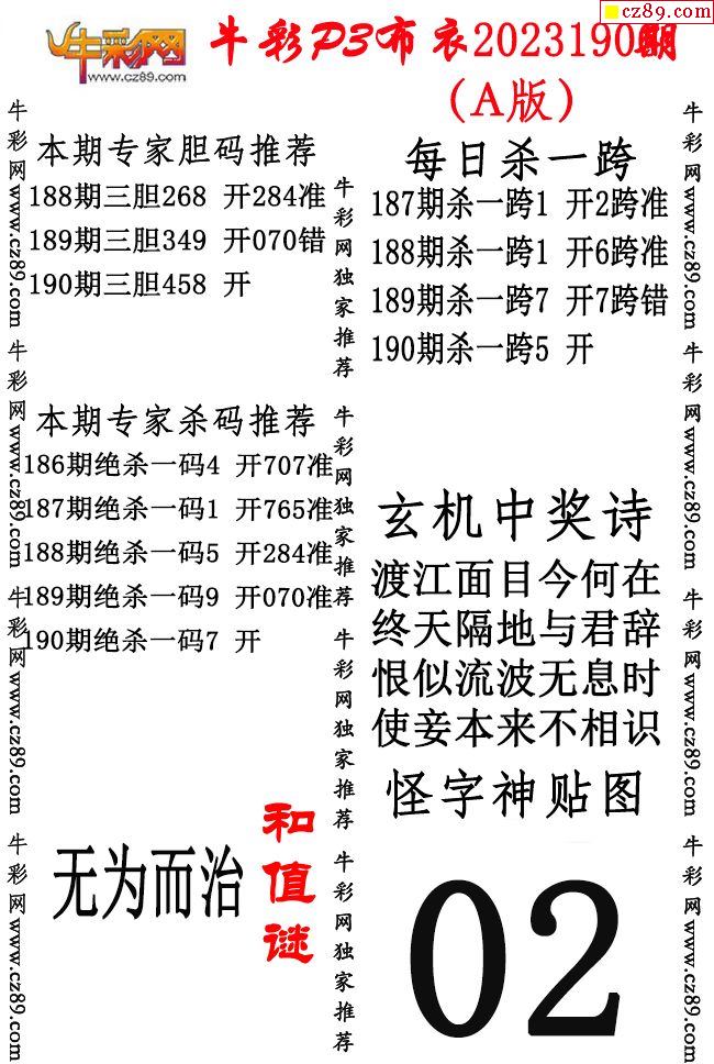 2025年339期牛彩网体彩P3画迷图谜汇总分享