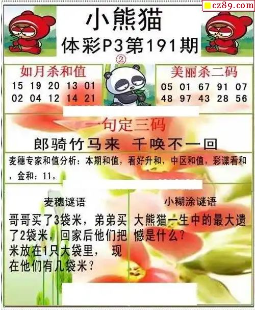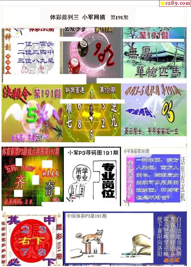 2023年191期牛彩网体彩P3画迷图谜汇总分享