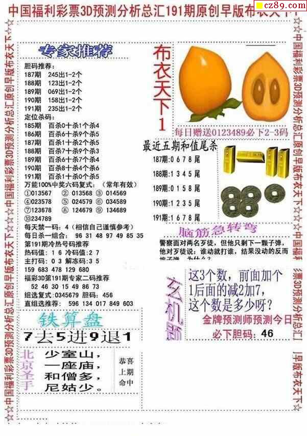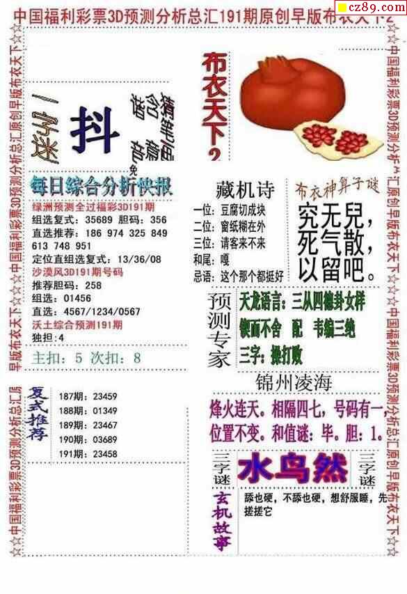 牛彩版3D字谜彩报图26年028期打印版